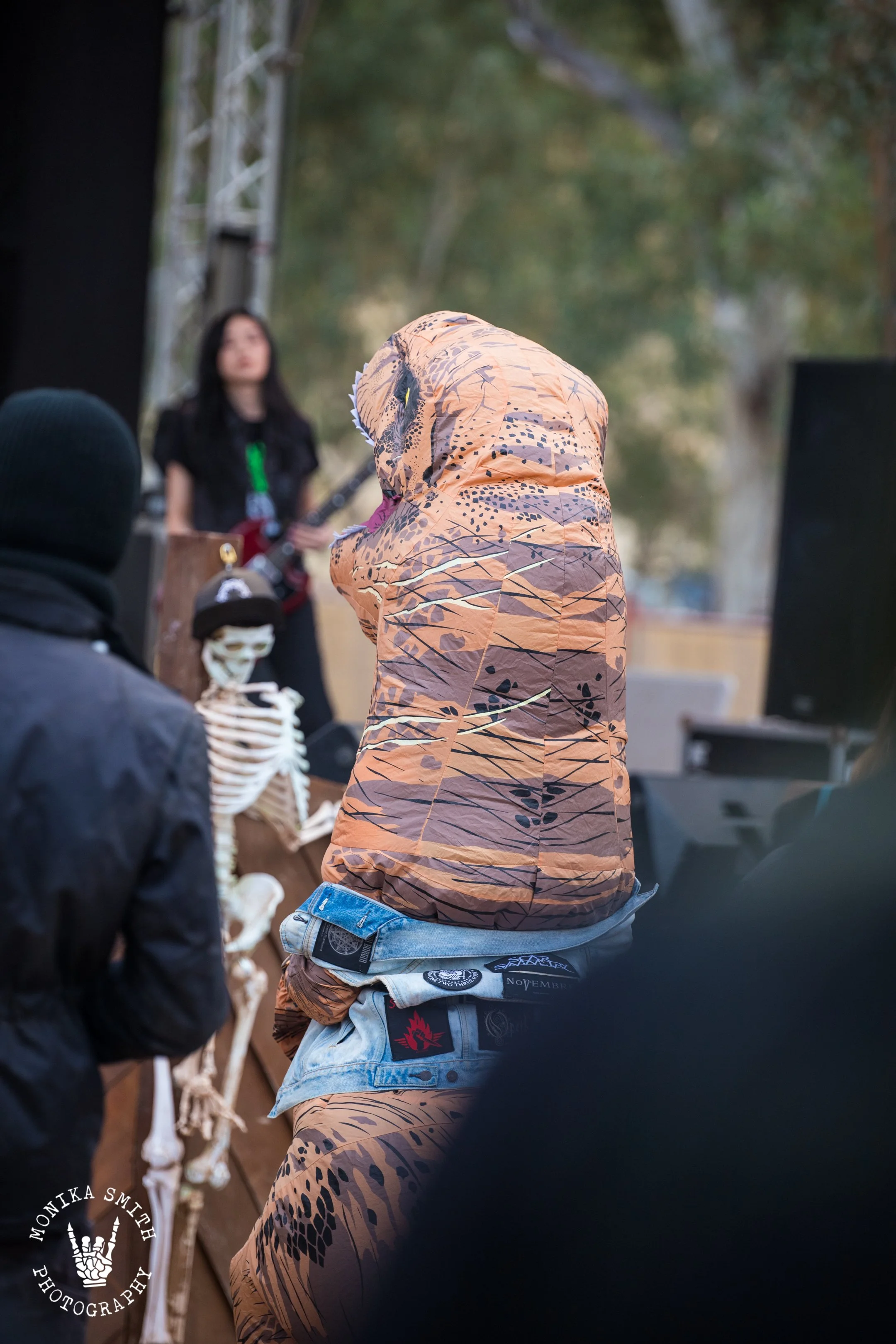 PHOTO BY: MONIKA ANNA OBERSCHEVEN-SMITHOne of my favourite Sydney bands to shoot and see live is Potion. The delicious doomy gloomy doom during the day was kinda exciting as I am used to shooting them with little to no lighting. So a photographers dream to have them under some daylight. I feel like this band is highly rated in the metal community but I also think at the same time they are the most underrated doom band in Australia. To repeat myself as I might do a few times as there are not a lot of words to describe festivals, but FLAWLESS. We were treated to an Arrernte Ceremony headed by Chris Wallace between bands. Suldusk hit the stage as the sun was slowly setting as Emily Highfield's voice danced over the slowly crisping dusk skies. People had been waiting for Snakes, to quote them “SNAKES are from the Dead Centre of Australia. Outrageous and outspoken. Their isolation has spawned a venomous concoction of metal that defies comparison.” it was brilliant to see The Black Wreath creators of this festival take to the stage and captivate/draw in everyone who was dotted around the festival to the front of the stage. There was a point during the set where a couch was carried to the front and Pirate climbed upon the couch surfing around in the pit. Shortly after Sydney based band Lo! took to the stage (minus Sam). What made this performance even more incredible was that their drummer Adrian had a really scary, and crazy accident at about 2am that morning. While navigating through the dark, he tripped, fell over and saw there was a rip in his jeans. Thinking it was fine, until they pulled up his pant leg to reveal a really deep, gnarly and pretty large open wound. The ambulance had already left, so a Blacken Open Air staff member had to rush him to hospital as this was something that needed to be treated immediately. He went to hospital but there was no medical professional available until a few hours later, so he hung at the hospital, eventually got stitched up, and headed back to Blacken. Despite the restricted leg movement due to his gnarled wound he pushed through and absolutely killed it, when Sam told the crowd about the injury they roared and threw up horns acknowledging Adrian as the metal god he is. Award for the biggest badass at the festival goes to him. As always Lo! destroyed their set much to the delight of the punters.