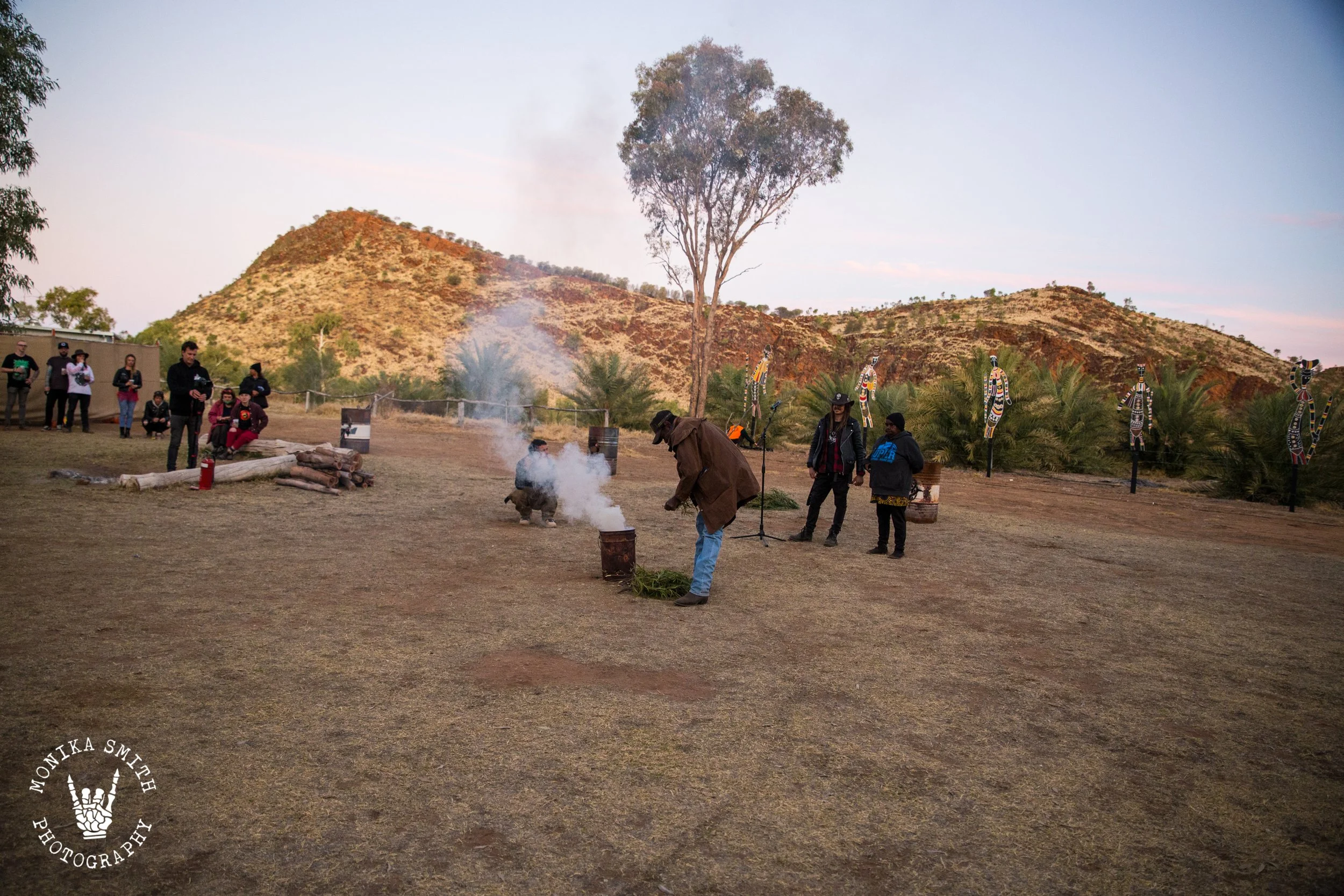 PHOTO BY: MONIKA ANNA OBERSCHEVEN-SMITHThe festival kicked off with the Welcome To Country followed by the Smoking Ceremony, which I stood back and watched in awe capturing the moment. As each and every person attending the festival walked through the smoke; as we were in the middle of nowhere the silence of the land wafted over the festival site, but to see the level of respect as people quietly followed each other in the most moving moment and all you could hear was the shuffling of feet as they kicked up the red dust. It was a moment that will stay with me.