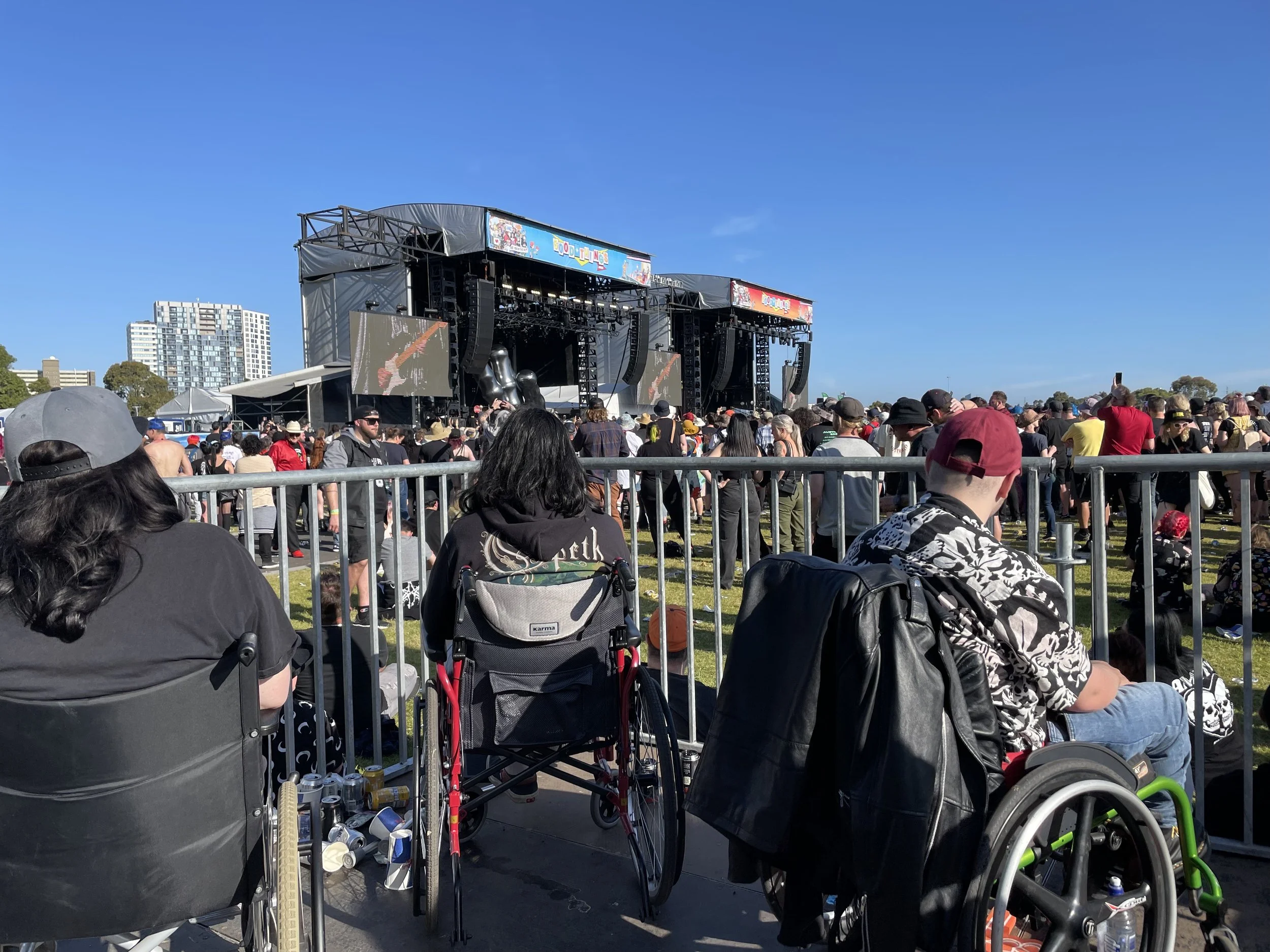Now as a wheelchair user it would be remiss of me if I didn’t address the blatant lack of accessibility Good Things posed. There were no accessible toilets, not one, which was beyond appalling. I even had one patron approach me at one point to ask if I had been able to find any, and they then proceeded to inform me they had had to carry and assist their friend in a wheelchair into a non-accessible toilet portaloo which was just disgusting and completely inhumane. The 'accessible viewing platform’ was another matter of its own. While I give the festival props for trying here and at the very least having one, it was so clearly a ‘ticking the box’ exercise and the actual execution and understanding of logistics needs plenty of work. The design reminded me of being in a cattle yard, and the positioning of the platform itself being so far off to the left side, as well as the lack of height essentially rendered it obsolete, you couldn’t actually see the band on stage two and also could not see the MainStage at all which was horrendous. Accessing the platform also required those using it to fight their way through the crowd which only became harder as the festival wore on and more and more punters packed in even tighter. There was nothing ‘accessible’ about it and it was one of the worst viewing platforms I’ve experienced thus far. If I was a paying punter and someone who required accessibility measures like such a viewing platform I’d be asking for a refund and honestly would have likely left the festival before headliners BMTH even graced the stage! Punters do not pay to stare at screens, and at the very least should be afforded a clear view of all stages, especially the MainStage.