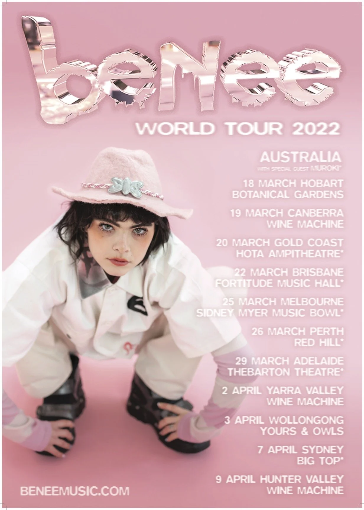 BENEE is also looking forward to a 2022 headline world tour starting with shows in Australia in March and April. See the full list of dates below and at beneemusic.com.