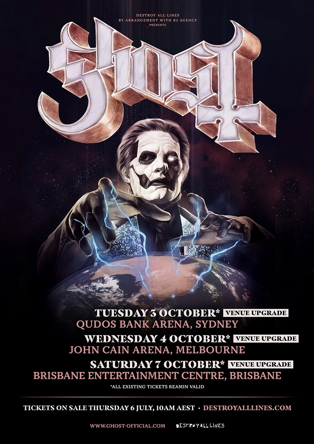 Australian fans are in for an incredible treat as the band have confirmed they will be bringing their full International Production over for their October headline tour and will receive the FULL Ghost experience.
