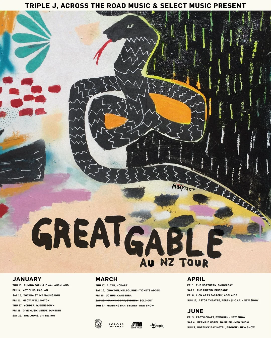 Supported by triple j, Across The Road Music + Select Music
