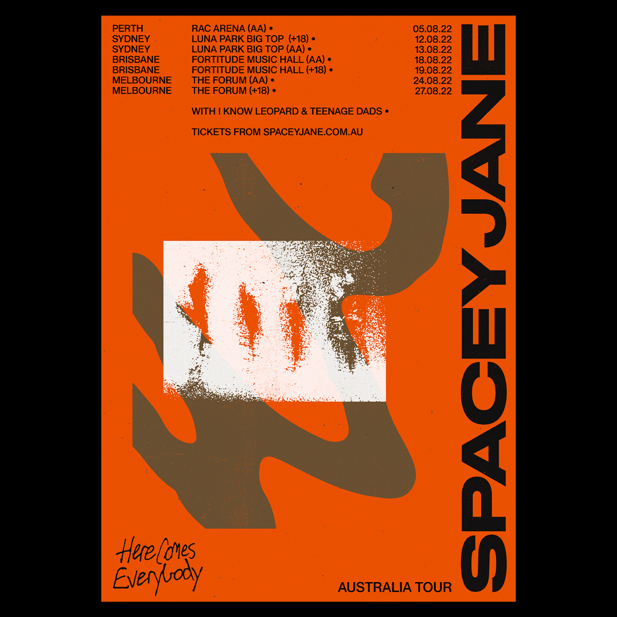 Fans who pre-order Here Comes Everybody through the Spacey Jane web store before Sunday 22 May at 11:59pm AEST, and anyone who has already pre-ordered the album, will receive a code for first access to tickets starting at 10am local time on Tuesday 24 May. Tickets go on sale to the general public on Friday 27 May at 10am local time.