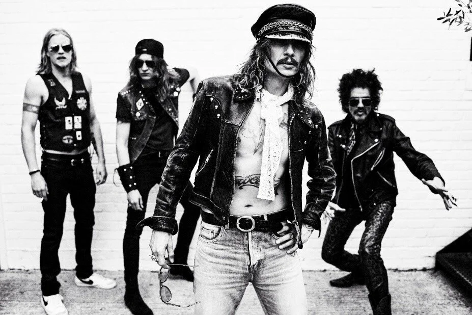 The fantastical video meanwhile features Justin Hawkins as a leather-clad biker journeying through a telephone box time machine to the good ol’ days of black and white silent movies for a nefarious murder mystery, starring his musical companions in never-before-seen style. It’s quite simply magnificent!