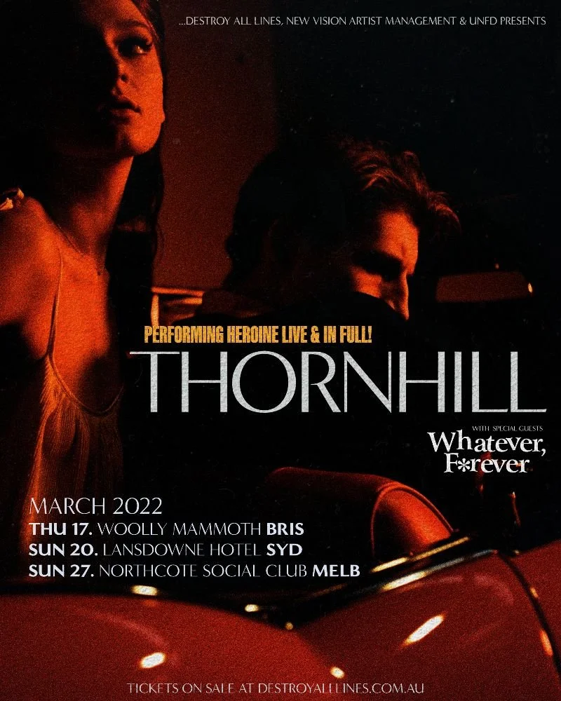 Propped up against their acclaimed 2019 debut album The Dark Pool, there’s a profound new sense of clarity, vision and intention to be heard on Heroine. Where The Dark Pool touched fans with its mix of crushing riffage and atmospheric metalcore, this record finds Thornhill flexing their skills in the alternative and rock worlds, referencing a tapestry of sounds from the likes of Smashing Pumpkins and Red Hot Chili Peppers, to Silverchair and Deftones. At the same time harking to flavours of modern metalcore, Thornhill ultimately want to showcase what can be made of heavy and rock music when there are no borders. Heroine does just this, and comes complete with elevated visuals and theatrics to match.